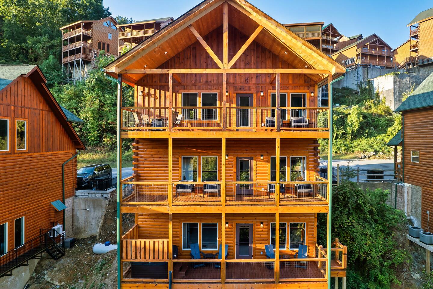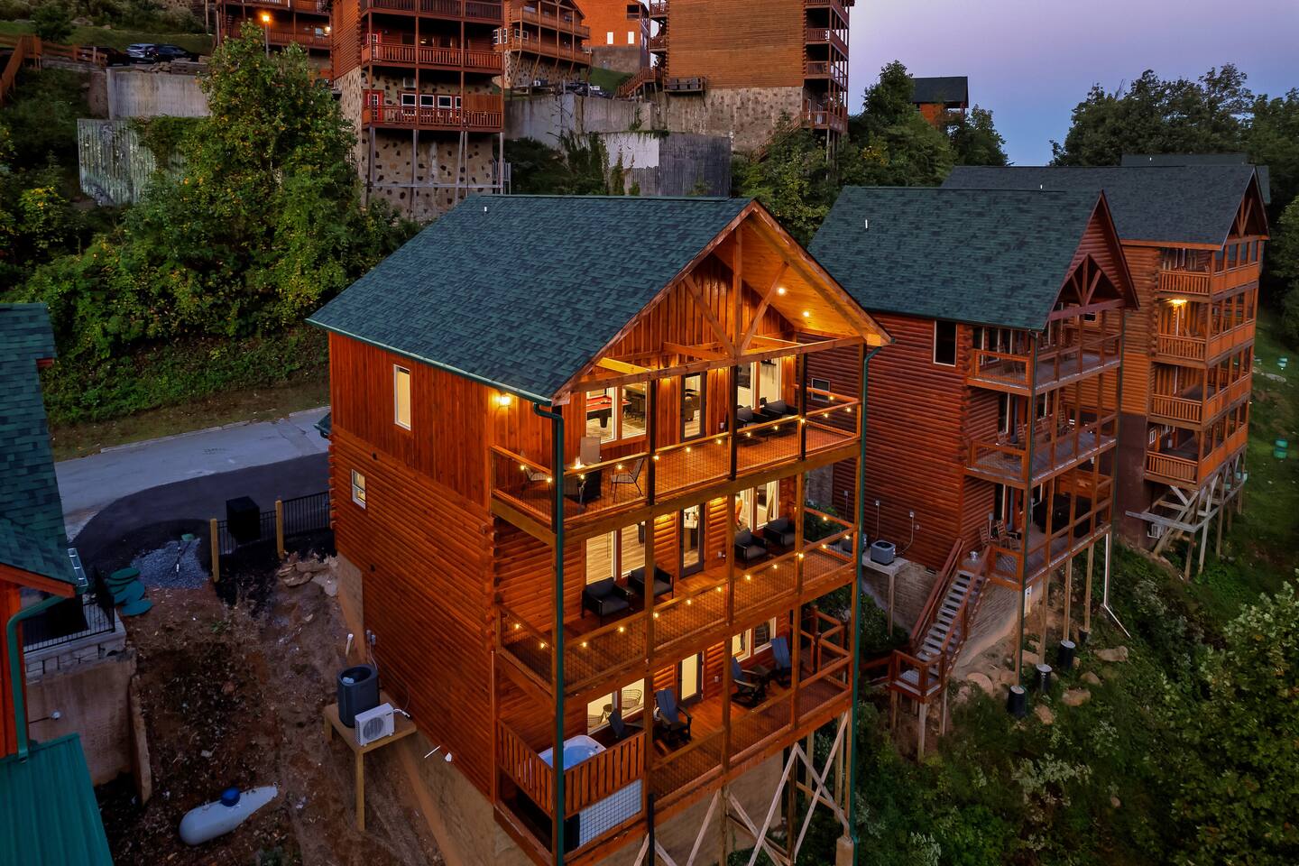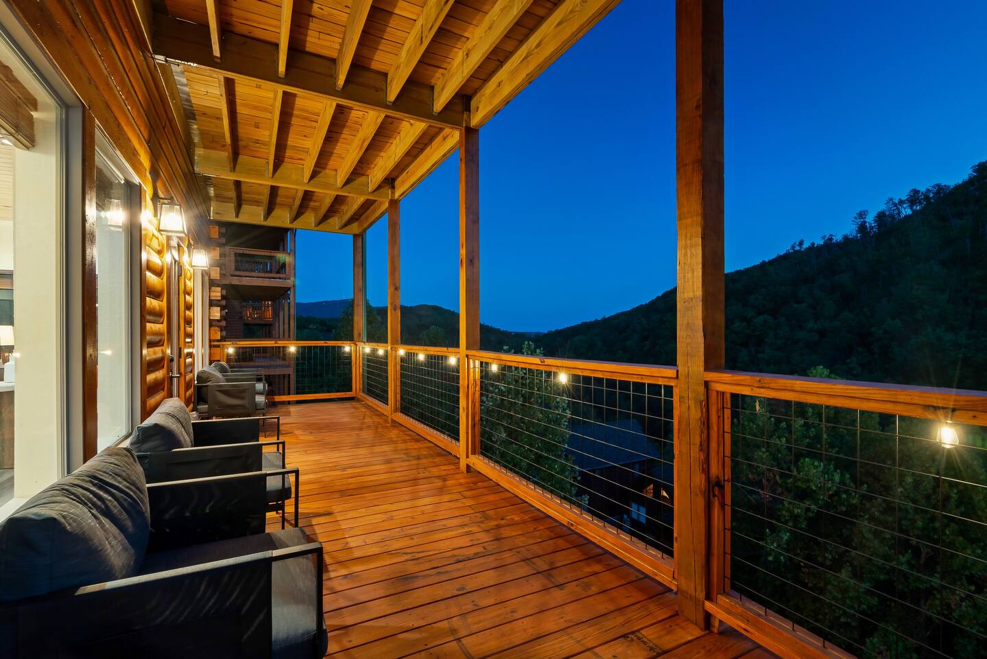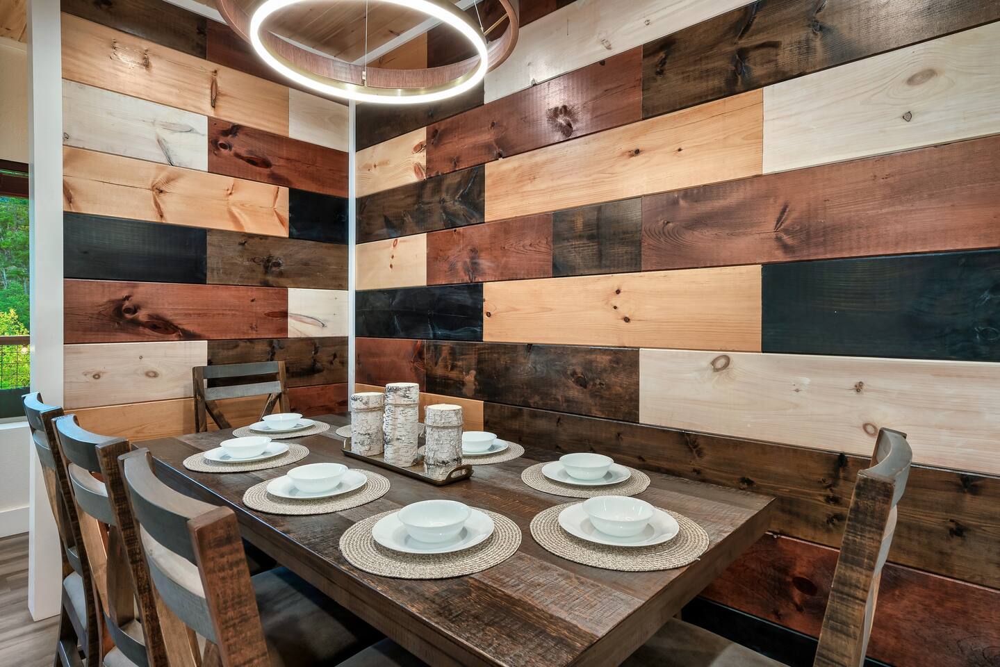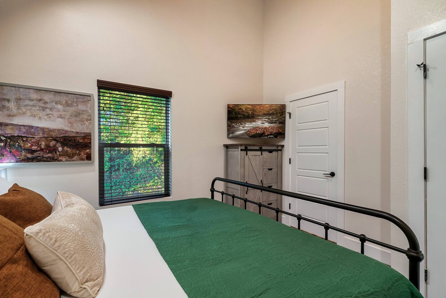 Reasons you'll LOVE The Surfin' Bear Lodge + HUGE 18' x 14' indoor private pool + Excellent location, 3.5 miles to the Parkway with wide, paved, easy to navigate roads + UBEREats, Walmart+ delivery available + Brand new construction with a modern rustic interior + Smart TVs in EVERY bedroom and living room (6 total) streaming Disney+, Hulu, Netflix, and FUBO for live SPORTS + Several CHILD-PROOFING features including retractable BABY GATES on all stairs, outlet covers, and video baby monitor + TWO pack n plays and an easy to clean high chair + Kiddie corner featuring Toniebox screen free entertainment, books, and wooden toys + Hot tub, gas fire pit, and 3 levels of outdoor deck space + DECORATED FOR CHRISTMAS *MAIN LEVEL - KITCHEN, DINING, LIVING, KING SUITE* Enter the cabin and you will be delighted by the full size galley style kitchen with sparkling countertops and all new stainless steel appliances. The kitchen flows through into the large dining area with seating for 8. The dining area is open to the stylish main floor living room equipped with an electric fireplace, large Smart TV, and queen sized sleeper sofa with a plush 3" memory foam mattress topper for added comfort. The large main floor bathroom is accessible from both the living area and master suite and features a shower/tub combo perfect for bath time. The spacious master suite features a smart TV, dresser, and cozy side chair. A large deck with modern yet comfortable seating finishes off the main floor. *LOWER LEVEL - POOL & HOT TUB* Descend down the stairs to your private oasis! Separated from the upstairs with an auto locking door for safety, the pool room features a state of the art 18' x 14' heated pool - one of the LARGEST indoor pools you will find in a cabin. The pool is heated between 78-82 degrees year round. You will be dazzled by the waterfall feature and LED lights. Plenty of space in the pool for the whole family to enjoy a game of pool basketball. Lounge in an oversized egg chair or relax on a floatie. A lower deck with rocking chairs and hot tub finish out this level. A full size washer and dryer and half bath are also located on this level for your convenience. *UPPER LEVEL - GAME ROOM, KING SUITE, BUNK ROOM w/QUEEN BED* The fun continues upstairs! Play a round of pool while watching the big game on the huge Smart TV. Kids and adults alike will enjoy the 3 arcade games. Last but certainly not least a dedicated kiddie corner for our youngest guests. Little ones will LOVE the Toniebox audio player, books, and plush campfire toy. Speaking of campfires - head out to the top level deck featuring a gas fire table perfect for roasting marshmallows! For sleeping this level features another king suite with private ensuite bathroom, a bunk room with a low twin over twin bunk, standalone queen bed, and ensuite bathroom (also accessible from game room). Lastly, there is a a queen sized sleeper sofa with 3" memory foam mattress topper.