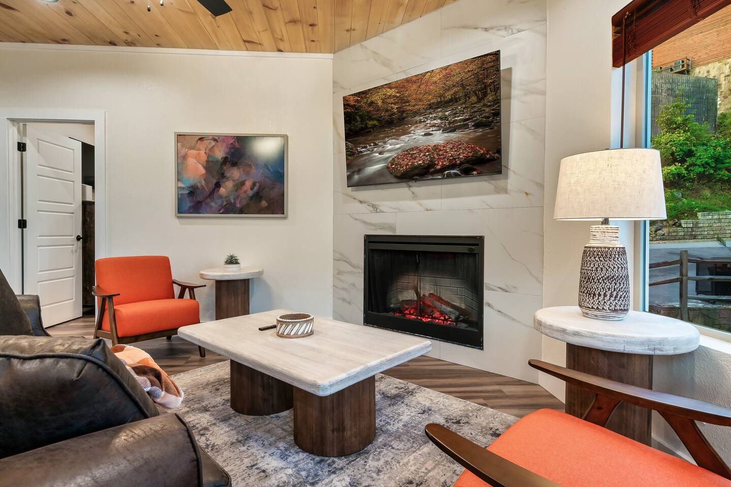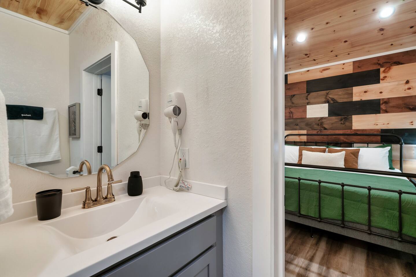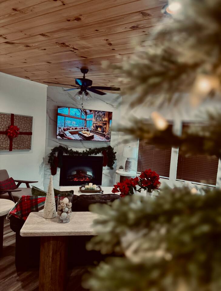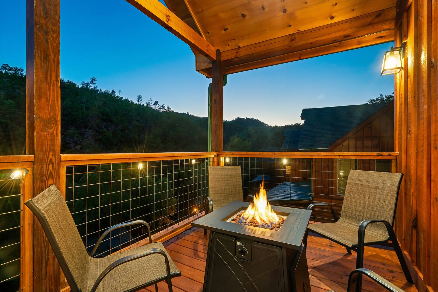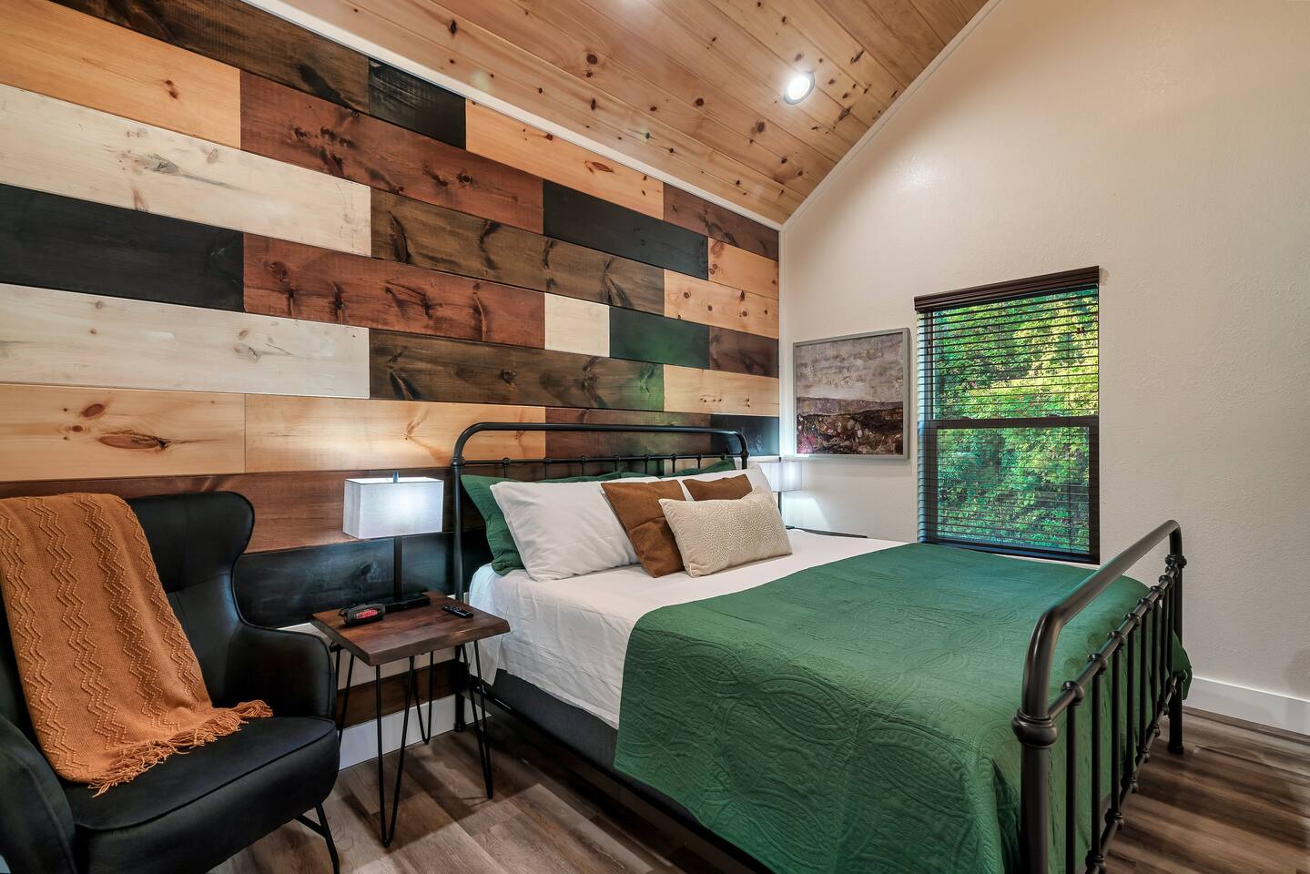 Reasons you'll LOVE The Surfin' Bear Lodge + HUGE 18' x 14' indoor private pool + Excellent location, 3.5 miles to the Parkway with wide, paved, easy to navigate roads + UBEREats, Walmart+ delivery available + Brand new construction with a modern rustic interior + Smart TVs in EVERY bedroom and living room (6 total) streaming Disney+, Hulu, Netflix, and FUBO for live SPORTS + Several CHILD-PROOFING features including retractable BABY GATES on all stairs, outlet covers, and video baby monitor + TWO pack n plays and an easy to clean high chair + Kiddie corner featuring Toniebox screen free entertainment, books, and wooden toys + Hot tub, gas fire pit, and 3 levels of outdoor deck space + DECORATED FOR CHRISTMAS *MAIN LEVEL - KITCHEN, DINING, LIVING, KING SUITE* Enter the cabin and you will be delighted by the full size galley style kitchen with sparkling countertops and all new stainless steel appliances. The kitchen flows through into the large dining area with seating for 8. The dining area is open to the stylish main floor living room equipped with an electric fireplace, large Smart TV, and queen sized sleeper sofa with a plush 3" memory foam mattress topper for added comfort. The large main floor bathroom is accessible from both the living area and master suite and features a shower/tub combo perfect for bath time. The spacious master suite features a smart TV, dresser, and cozy side chair. A large deck with modern yet comfortable seating finishes off the main floor. *LOWER LEVEL - POOL & HOT TUB* Descend down the stairs to your private oasis! Separated from the upstairs with an auto locking door for safety, the pool room features a state of the art 18' x 14' heated pool - one of the LARGEST indoor pools you will find in a cabin. The pool is heated between 78-82 degrees year round. You will be dazzled by the waterfall feature and LED lights. Plenty of space in the pool for the whole family to enjoy a game of pool basketball. Lounge in an oversized egg chair or relax on a floatie. A lower deck with rocking chairs and hot tub finish out this level. A full size washer and dryer and half bath are also located on this level for your convenience. *UPPER LEVEL - GAME ROOM, KING SUITE, BUNK ROOM w/QUEEN BED* The fun continues upstairs! Play a round of pool while watching the big game on the huge Smart TV. Kids and adults alike will enjoy the 3 arcade games. Last but certainly not least a dedicated kiddie corner for our youngest guests. Little ones will LOVE the Toniebox audio player, books, and plush campfire toy. Speaking of campfires - head out to the top level deck featuring a gas fire table perfect for roasting marshmallows! For sleeping this level features another king suite with private ensuite bathroom, a bunk room with a low twin over twin bunk, standalone queen bed, and ensuite bathroom (also accessible from game room). Lastly, there is a a queen sized sleeper sofa with 3" memory foam mattress topper.
