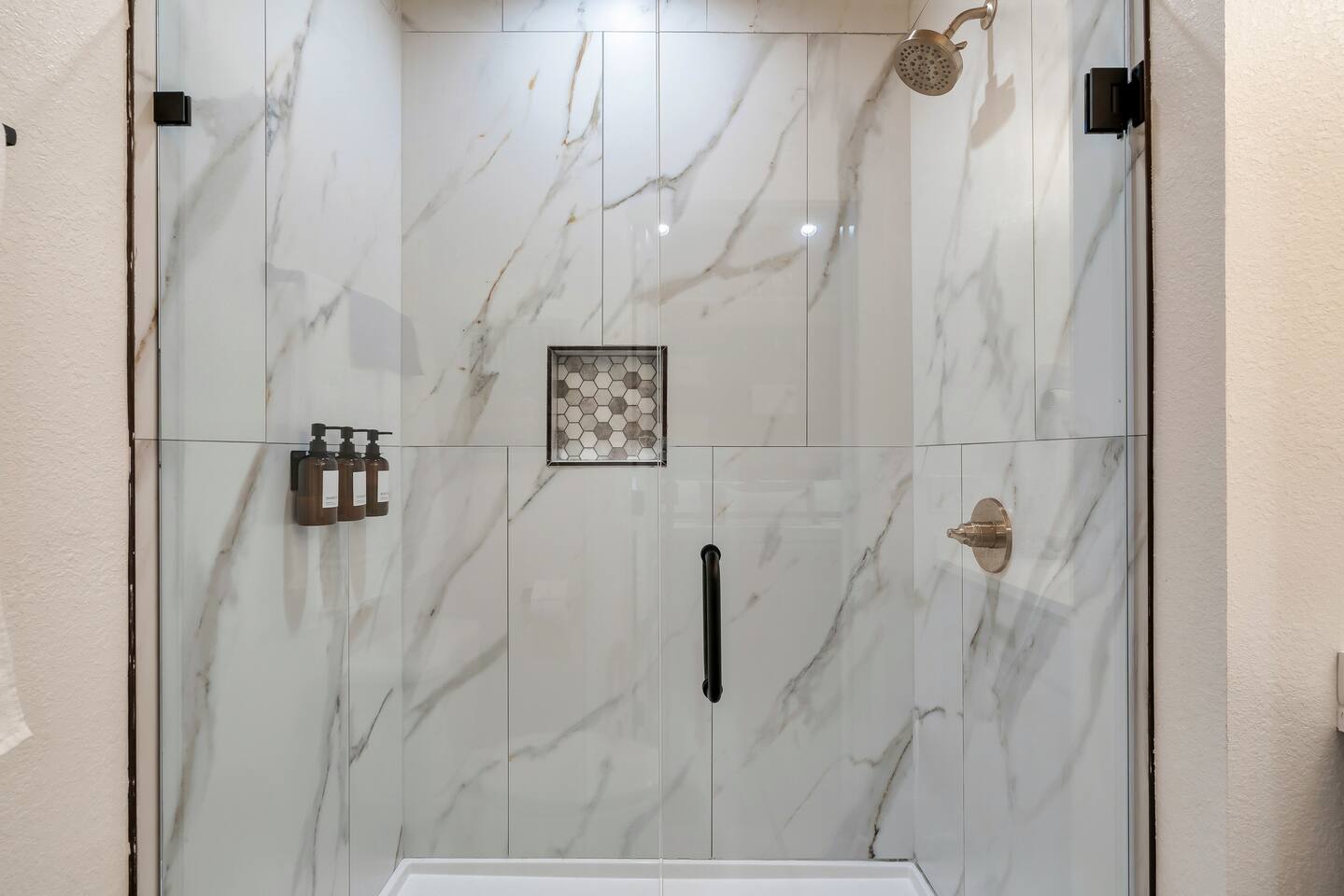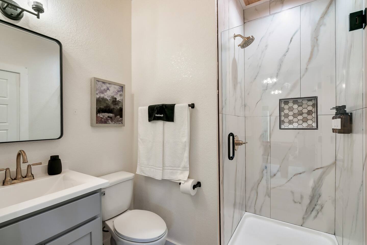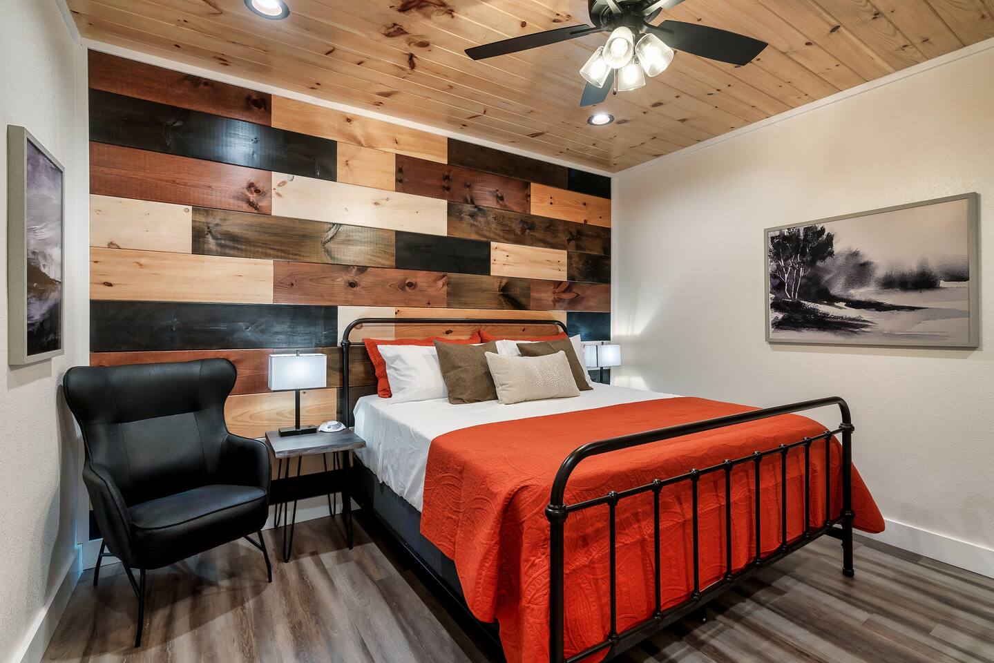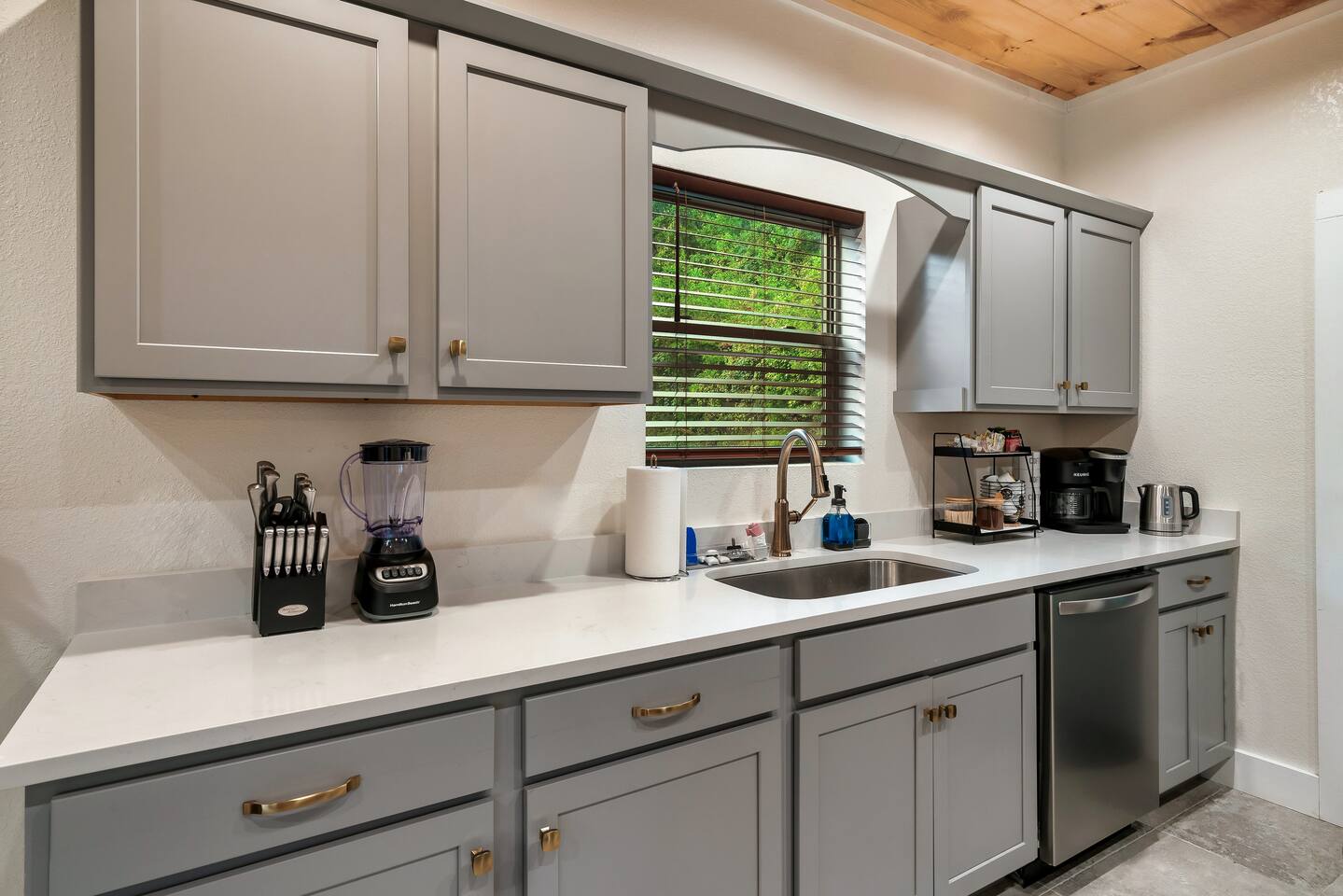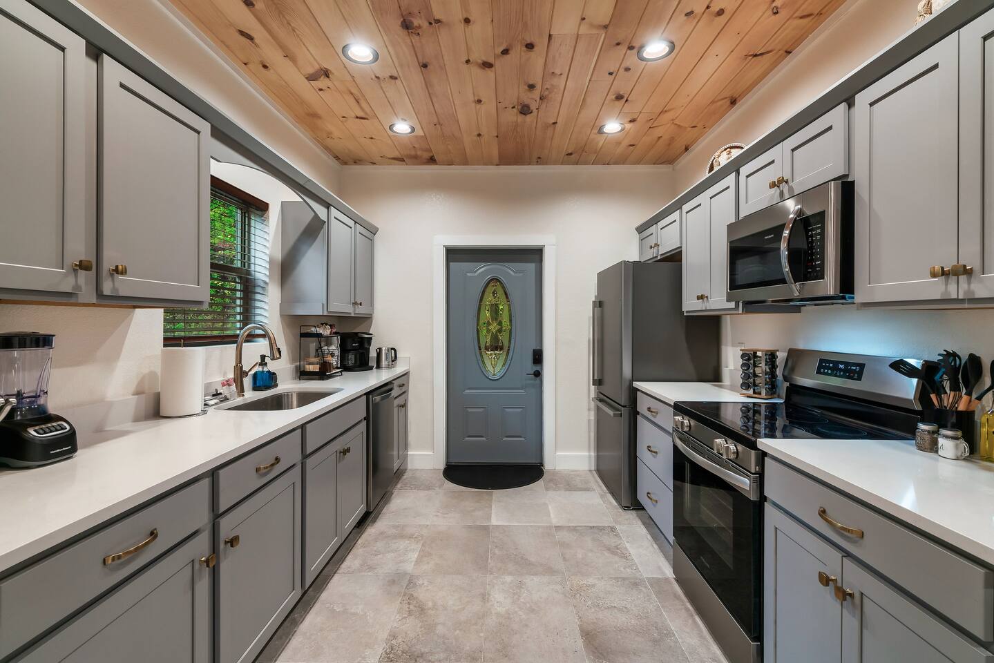 Reasons you'll LOVE The Surfin' Bear Lodge + HUGE 18' x 14' indoor private pool + Excellent location, 3.5 miles to the Parkway with wide, paved, easy to navigate roads + UBEREats, Walmart+ delivery available + Brand new construction with a modern rustic interior + Smart TVs in EVERY bedroom and living room (6 total) streaming Disney+, Hulu, Netflix, and FUBO for live SPORTS + Several CHILD-PROOFING features including retractable BABY GATES on all stairs, outlet covers, and video baby monitor + TWO pack n plays and an easy to clean high chair + Kiddie corner featuring Toniebox screen free entertainment, books, and wooden toys + Hot tub, gas fire pit, and 3 levels of outdoor deck space + DECORATED FOR CHRISTMAS *MAIN LEVEL - KITCHEN, DINING, LIVING, KING SUITE* Enter the cabin and you will be delighted by the full size galley style kitchen with sparkling countertops and all new stainless steel appliances. The kitchen flows through into the large dining area with seating for 8. The dining area is open to the stylish main floor living room equipped with an electric fireplace, large Smart TV, and queen sized sleeper sofa with a plush 3" memory foam mattress topper for added comfort. The large main floor bathroom is accessible from both the living area and master suite and features a shower/tub combo perfect for bath time. The spacious master suite features a smart TV, dresser, and cozy side chair. A large deck with modern yet comfortable seating finishes off the main floor. *LOWER LEVEL - POOL & HOT TUB* Descend down the stairs to your private oasis! Separated from the upstairs with an auto locking door for safety, the pool room features a state of the art 18' x 14' heated pool - one of the LARGEST indoor pools you will find in a cabin. The pool is heated between 78-82 degrees year round. You will be dazzled by the waterfall feature and LED lights. Plenty of space in the pool for the whole family to enjoy a game of pool basketball. Lounge in an oversized egg chair or relax on a floatie. A lower deck with rocking chairs and hot tub finish out this level. A full size washer and dryer and half bath are also located on this level for your convenience. *UPPER LEVEL - GAME ROOM, KING SUITE, BUNK ROOM w/QUEEN BED* The fun continues upstairs! Play a round of pool while watching the big game on the huge Smart TV. Kids and adults alike will enjoy the 3 arcade games. Last but certainly not least a dedicated kiddie corner for our youngest guests. Little ones will LOVE the Toniebox audio player, books, and plush campfire toy. Speaking of campfires - head out to the top level deck featuring a gas fire table perfect for roasting marshmallows! For sleeping this level features another king suite with private ensuite bathroom, a bunk room with a low twin over twin bunk, standalone queen bed, and ensuite bathroom (also accessible from game room). Lastly, there is a a queen sized sleeper sofa with 3" memory foam mattress topper.